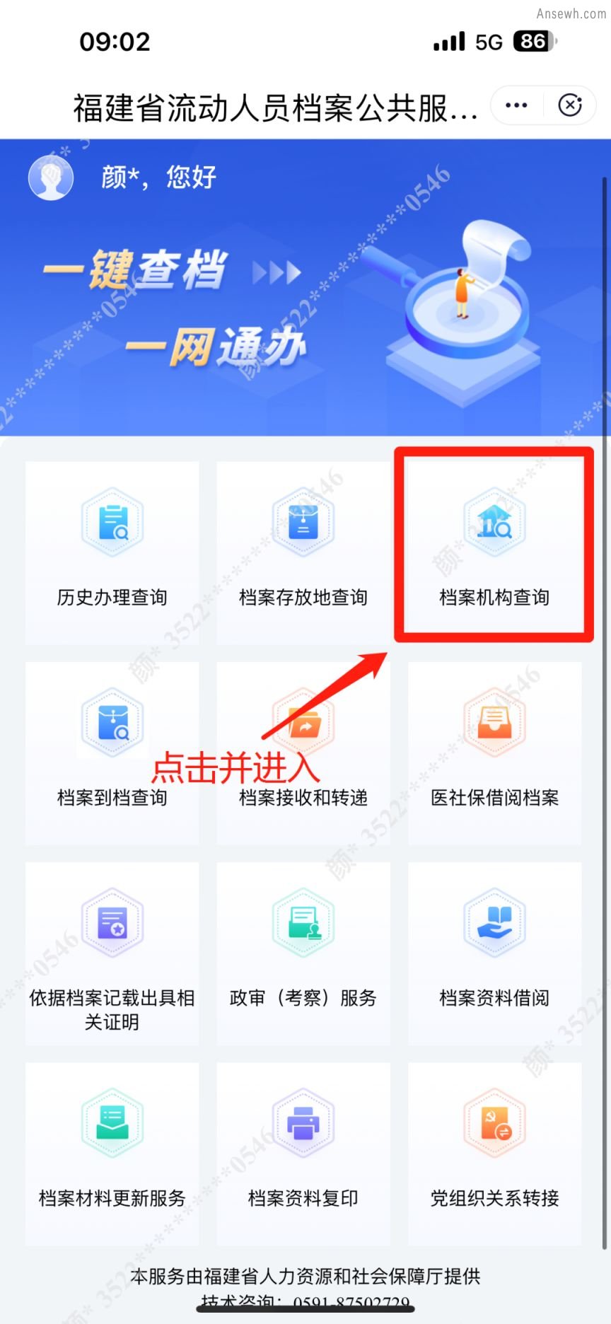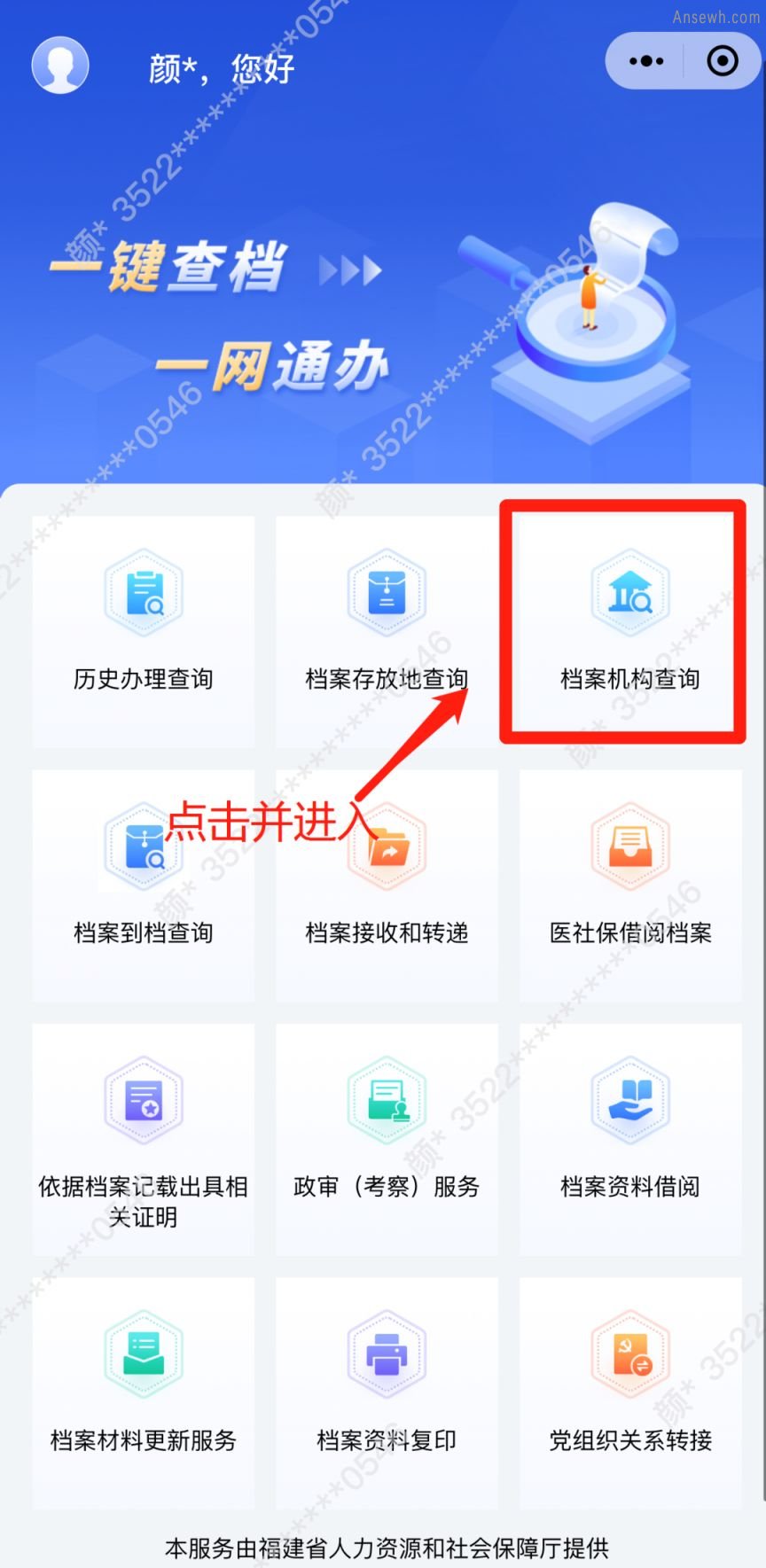 3、点击【档案机构查询】进行查找