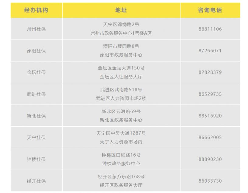 二、常州市社保经办机构地址及联系电话
