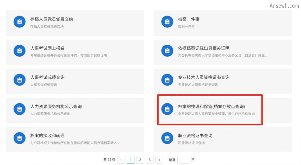 2.点击【档案的整理和保管(档案存放点查询)】,即可查询档案存放在何处。