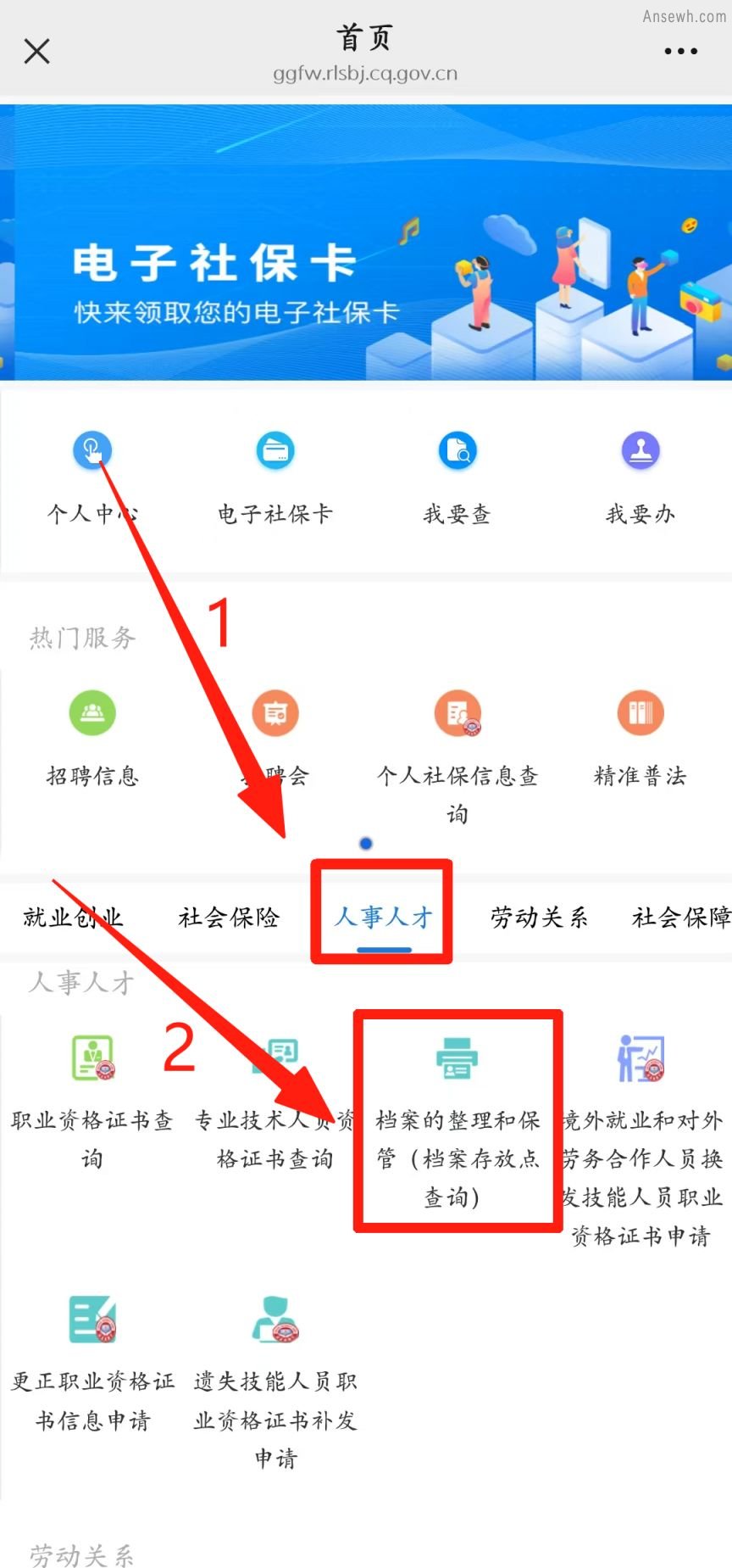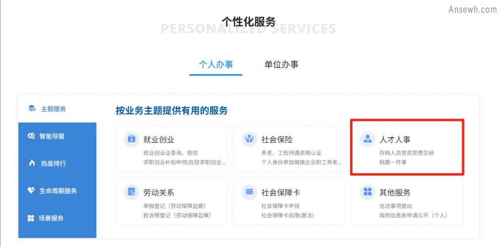 2.进入【人事人才】,点击【档案的整理和保管(档案存放点查询)】,登录后即可查询。