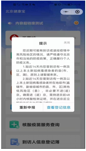 如您有进(返)京记录,请尽早核验行程,以免影响使用。
