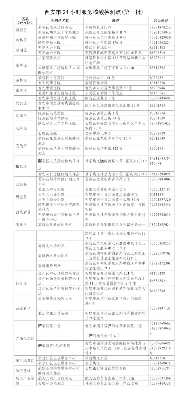 全国档案查询公共就业和人才服务中心西安24小时核酸检测点名单(第一批)