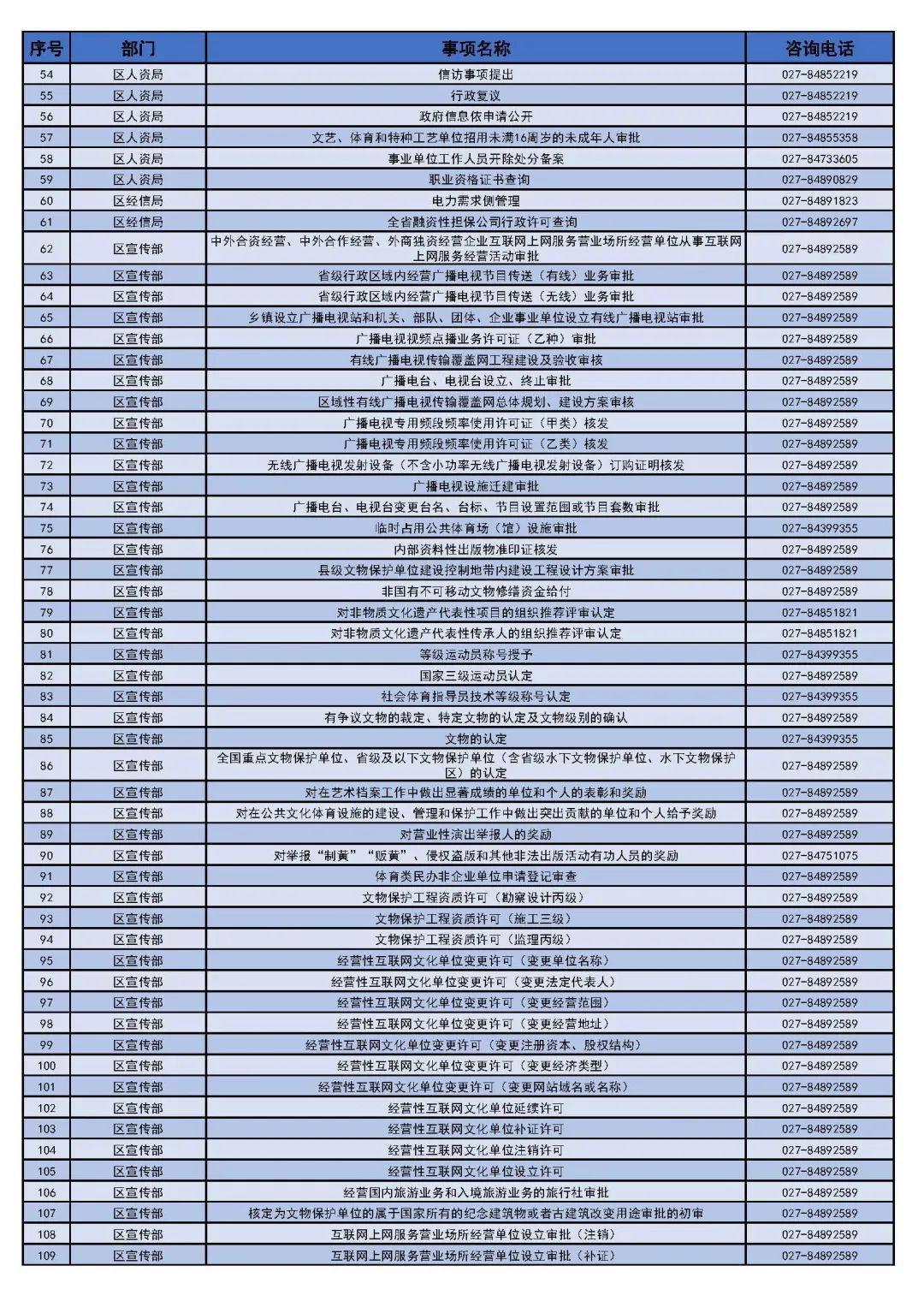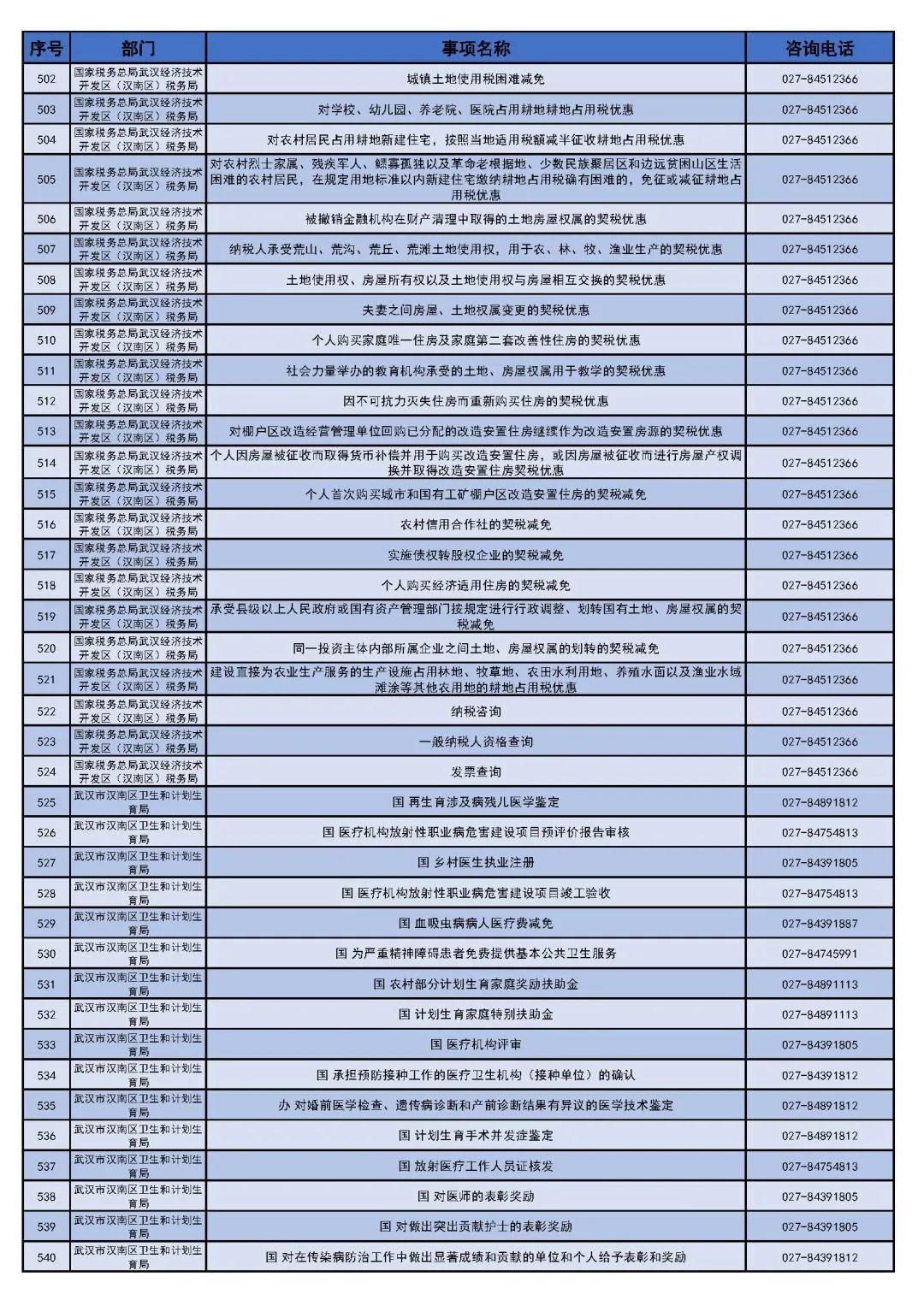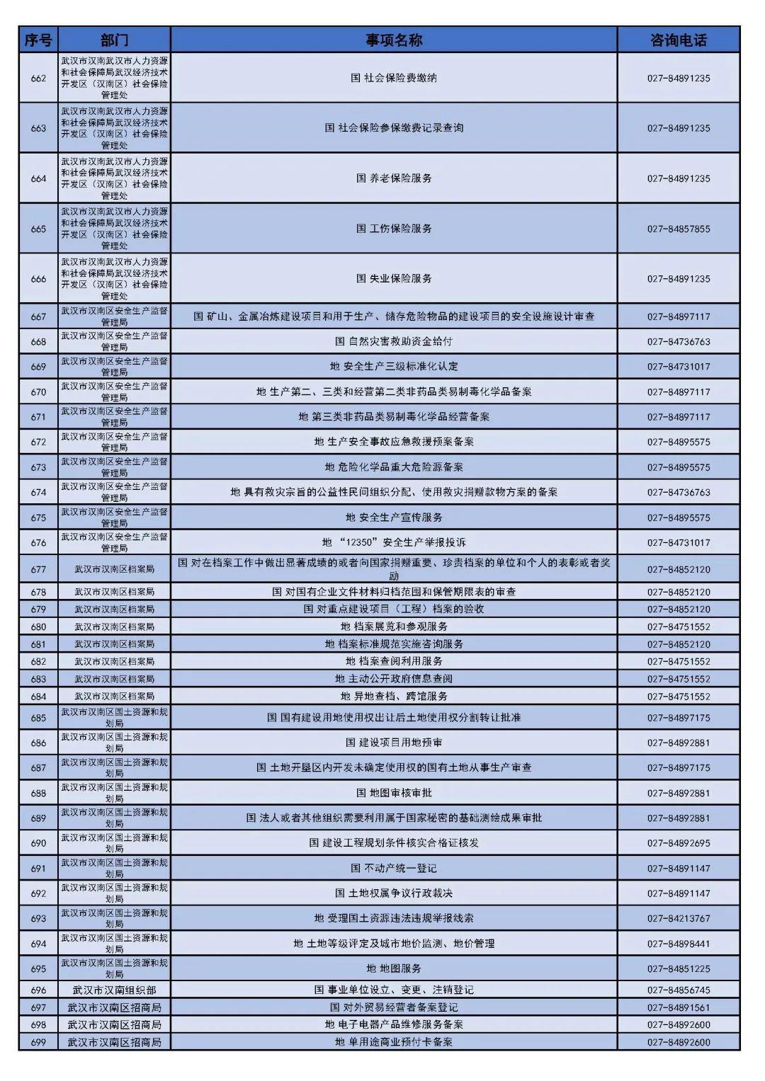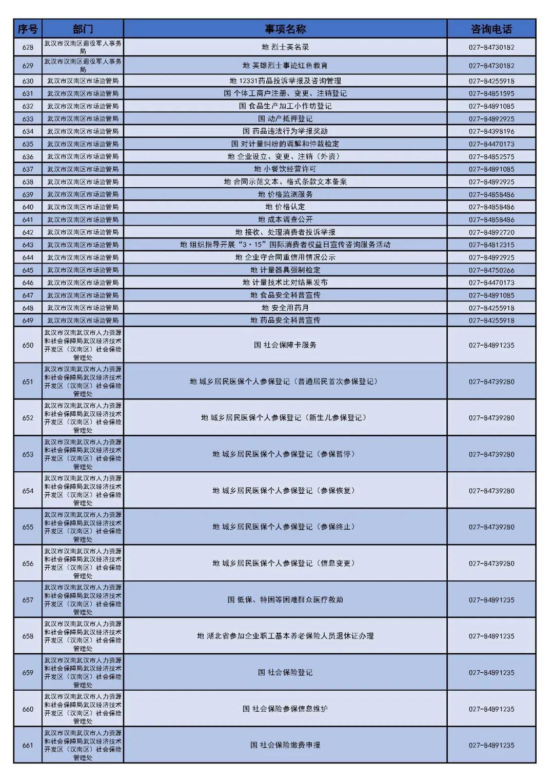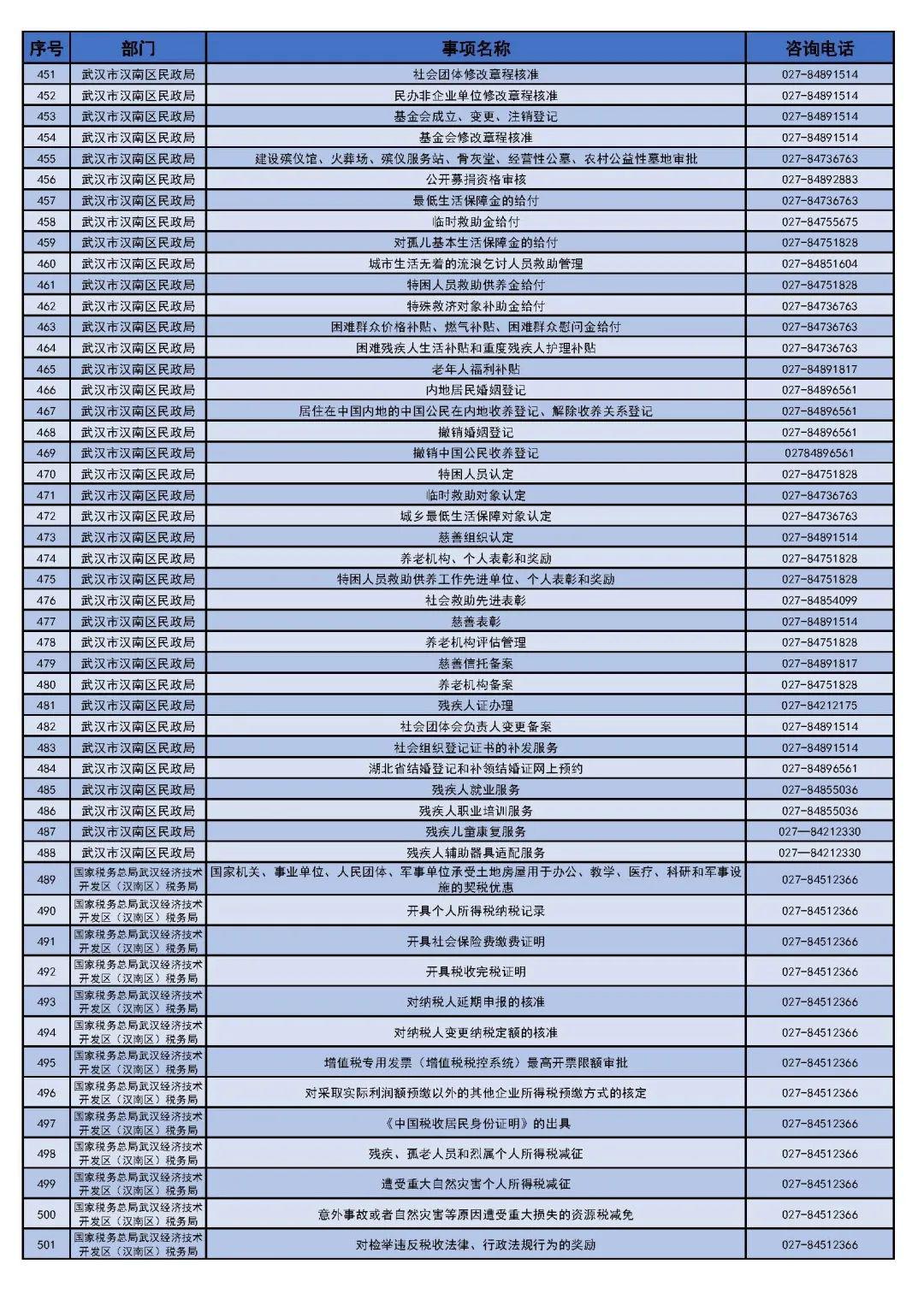 武汉市汉南区(经济开发区)政务服务"网上办"事项清单
