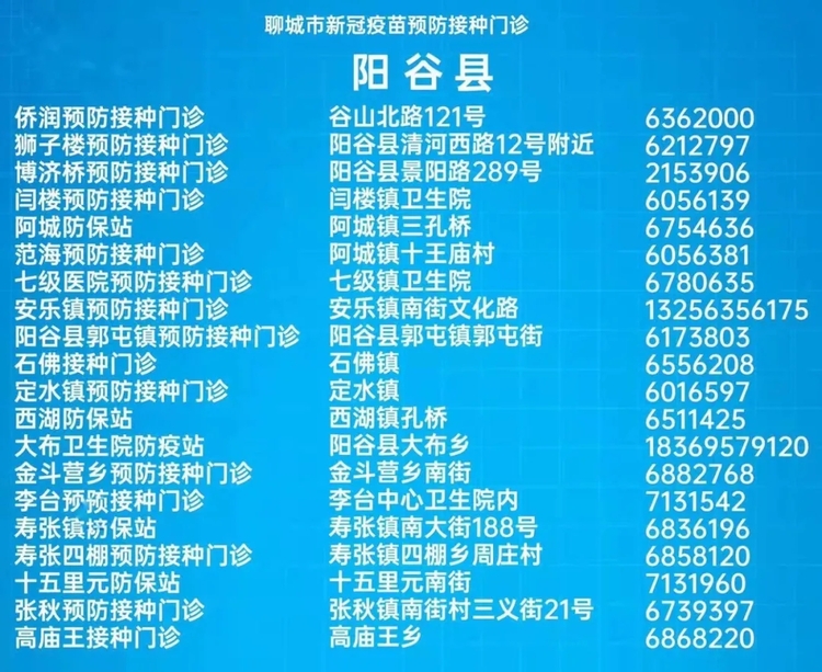 接种地点:聊城市阳谷县景阳路289号