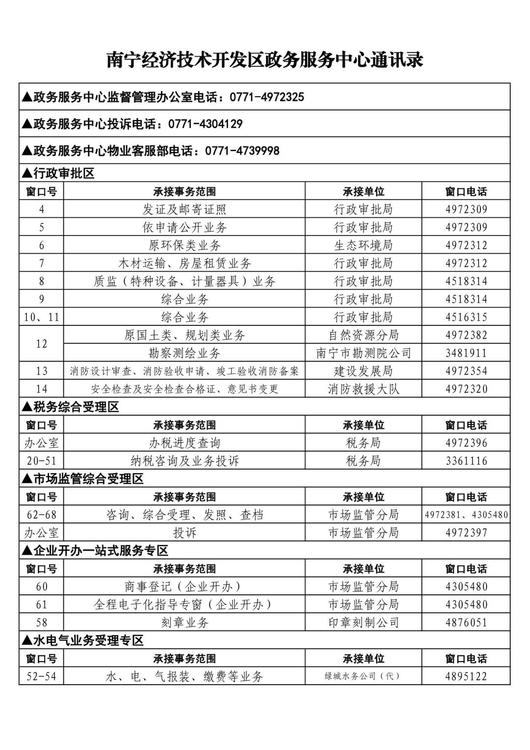 投诉电话:0771-4304129(政务服务中心),0771-4518601(管委会纪检监察室),0771-12345(南宁市市长热线电话)