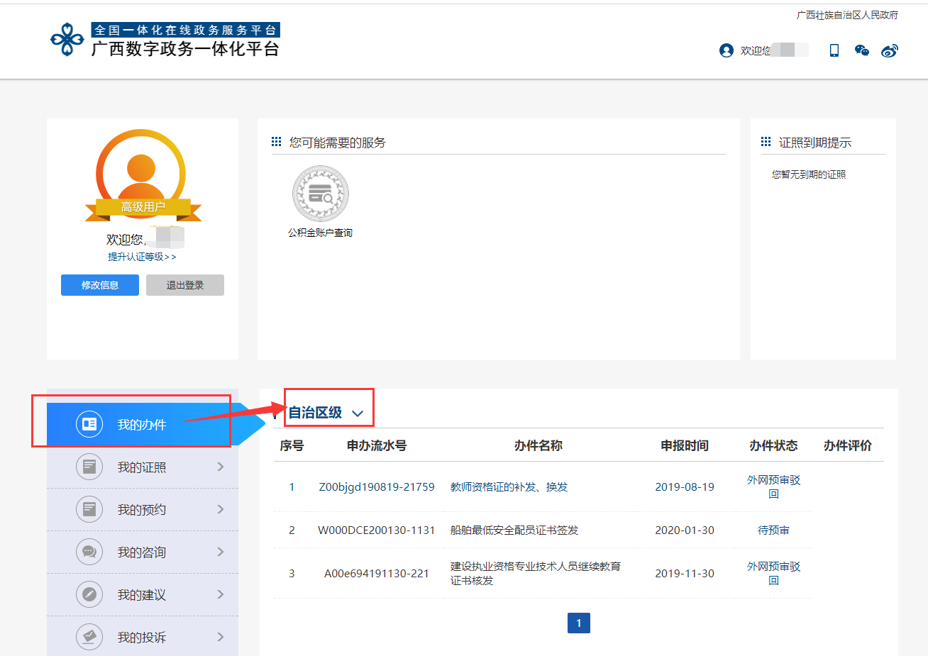 全国档案查询公共就业和人才服务中心一、广西数字政务一体化平台网上办事大厅申报指引