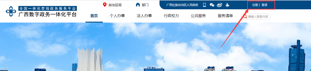 第一步:打开网站首页:使用主流浏览器(360浏览器极速模式、谷歌),输入地址:http://zwfw.gxzf.gov.cn