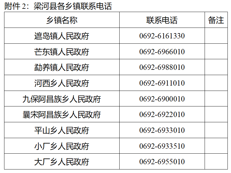 梁河县新型冠状病毒感染的肺炎疫情防控指挥部报告联系电话:0692—6164241;