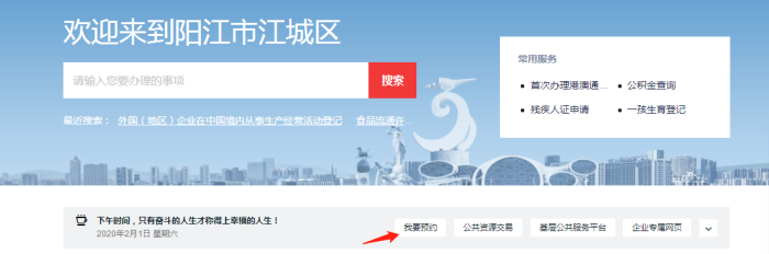 打开广东政务服务网阳江江城版面