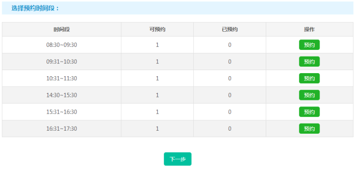 4、选择适合的【预约日期】与【预约时间段】