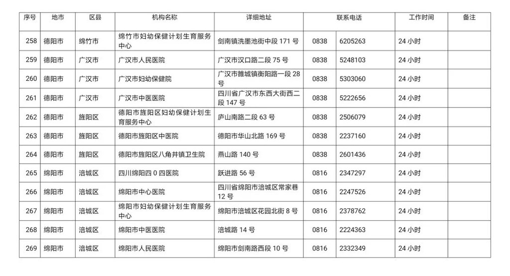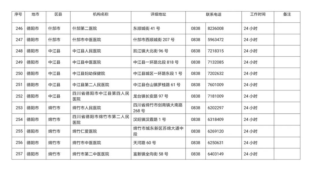 2、 德阳市24小时新冠肺炎核酸检测机构联系信息