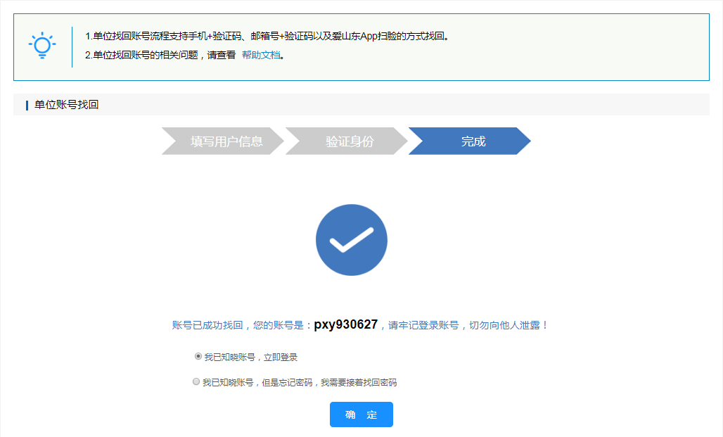 1、单位账号找回