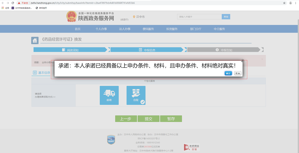 13.填写完毕点击提交,阅读承诺书,并点击确定。