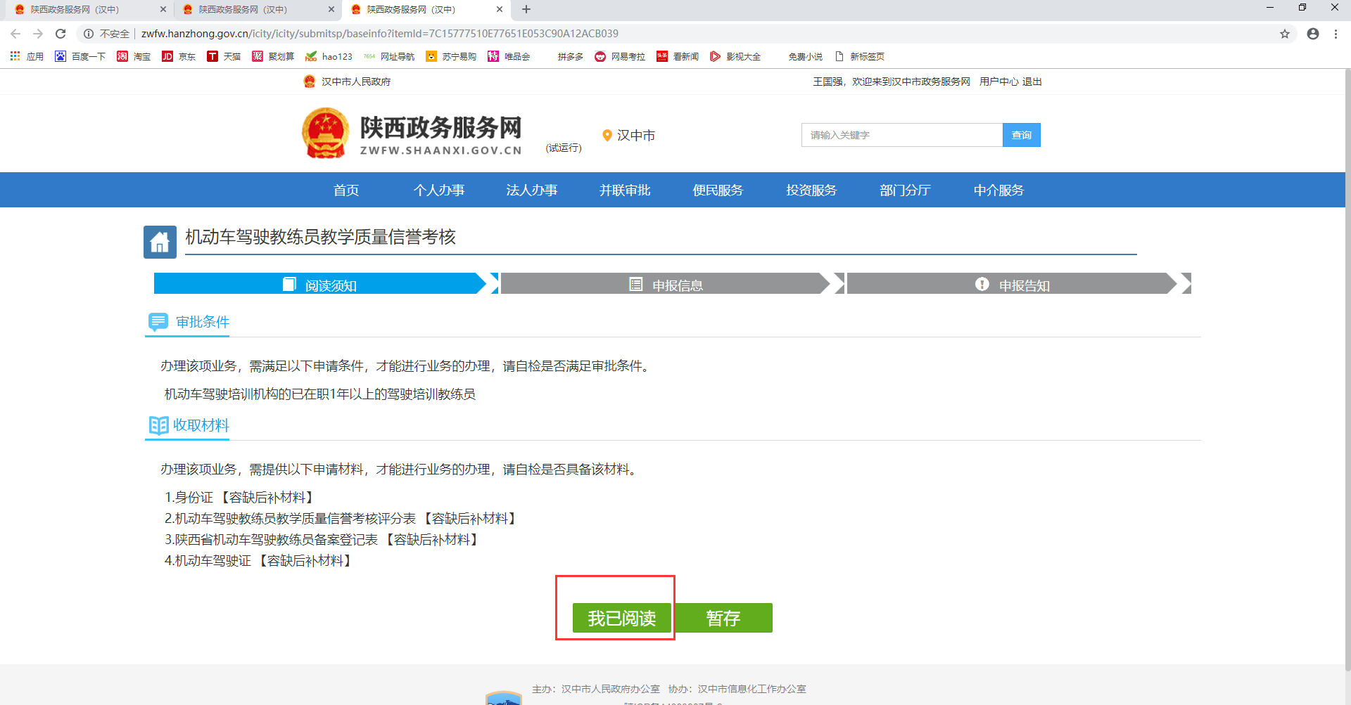 8.阅读须知,查看办理条件和所需材料,查看完毕点击我已阅读。