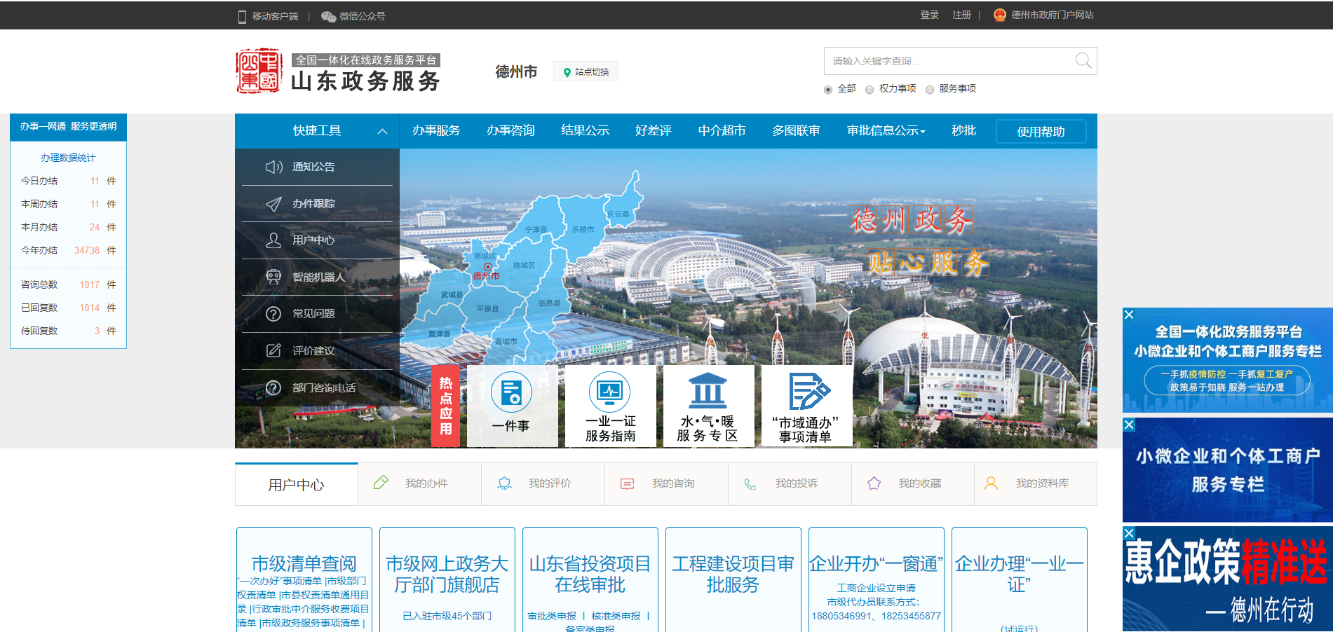 1.输入http://dzzwfw.sd.gov.cn/dz/public/index访问山东政务服务网(德州站)。