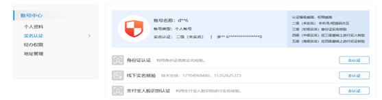 4、选择“实名认证”——身份证认证(去认证)。
