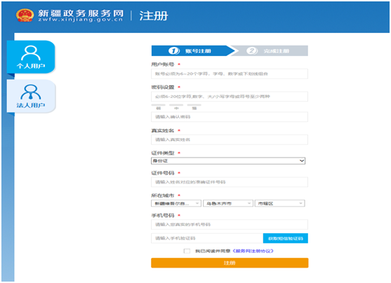 (一)个人用户注册(“新疆政务服务网”网页版)