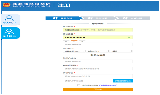 (二)、法人注册(“新疆政务服务网”网页版)