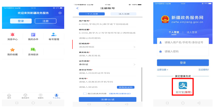 (三)“新疆政务服务”手机APP版个人用户注册