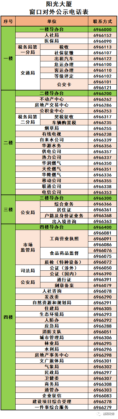 | 序号 | 单位 | 窗口名称 | 窗口电话 |