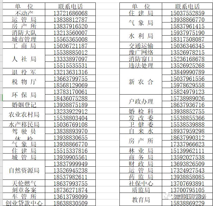 嵩县行政服务中心延迟上班期间窗口工作人员联系电话