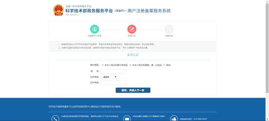 访问科学技术部政务服务平台(https://fuwu.most.gov.cn/html/),点击科学技术部政务服务平台系统首页右侧上方的“用户注册”按钮,弹出用户注册主界面如图2-1所示: