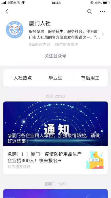 手机应用商店下载“厦门人社”APP或者微信公众号“厦门人社个人服务”。