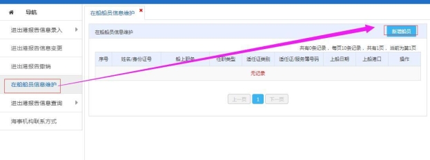 点击新增船员按钮,进入在船船员录入界面,如下图: