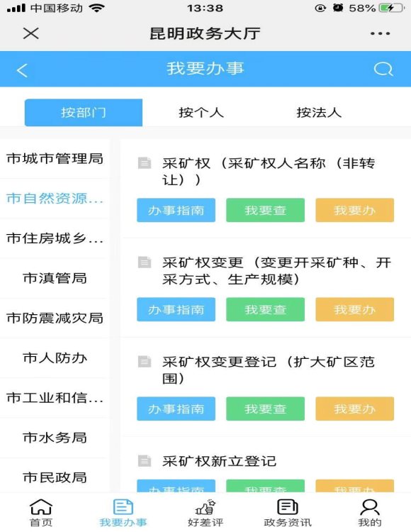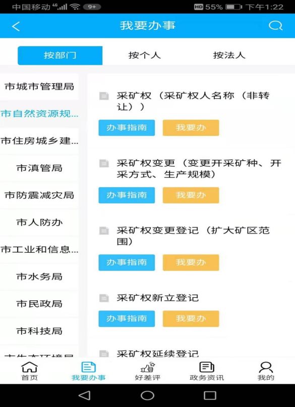 3.选择个人办事、法人办事、部门服务。