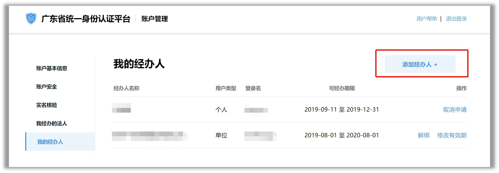 点击“添加经办人”按钮。