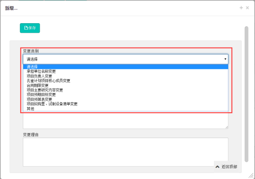 3. 勾选一个后,点“申请变更”,填写变更申请表,先保存,再添加变更的具体内容。