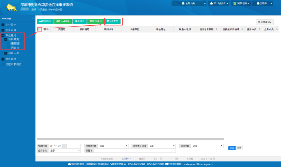 2. 登录成功后,依次点击“业务申请”->“深圳市科技创新委”->“项目变更(科技计划/高企认定)”,此时会显示目前您所有已立项的项目数据。