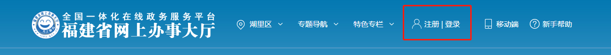 第一步:打开网址(http://xmhl.zwfw.fujian.gov.cn/?noNotice=false)后,已注册用户可直接登录,未注册用户点击注册按钮进行注册。