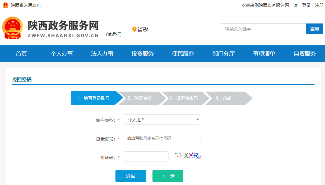 陕西省政务服务网网上办事大厅用户忘记登录密码如何找回